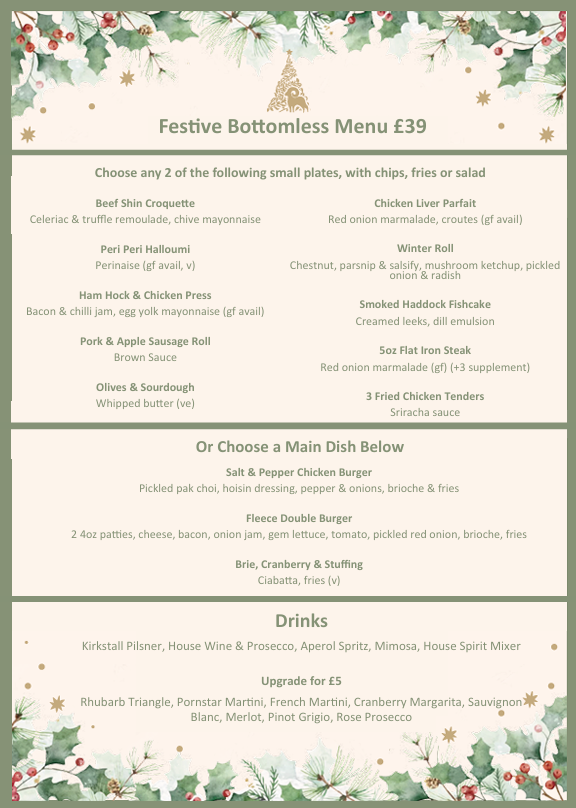 We serve delicious traditional roasts every Sunday from 12pm till 6pm. Come along, kick back and relax while our team looks after you. We want you to feel like ‘The Fleece’ is your home from home